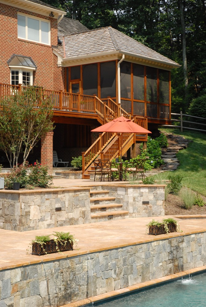 A gorgeous Outdoor Living Space with a Travertine Patio surrounding the pool and a Screened Room.
