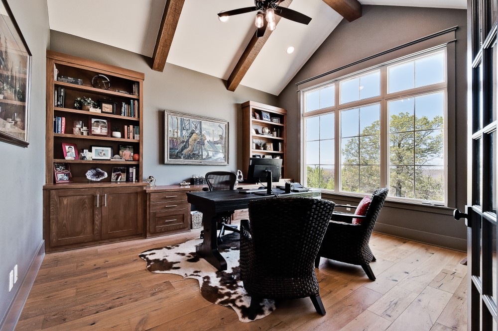 Sitting on 50 acres on a hilltop in the Ozark Mountains, this 5000 sq. ft. home has it all. It's Texas Hill Country meets Modern Farmhouse and it works! Oh the VIEW and that laundry room!!! Design by David Quye Designs