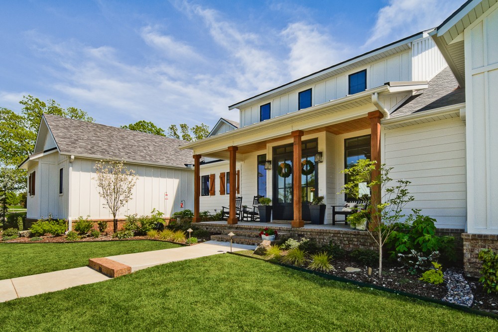 Sitting on 50 acres on a hilltop in the Ozark Mountains, this 5000 sq. ft. home has it all. It's Texas Hill Country meets Modern Farmhouse and it works! Oh the VIEW and that laundry room!!! Design by David Quye Designs