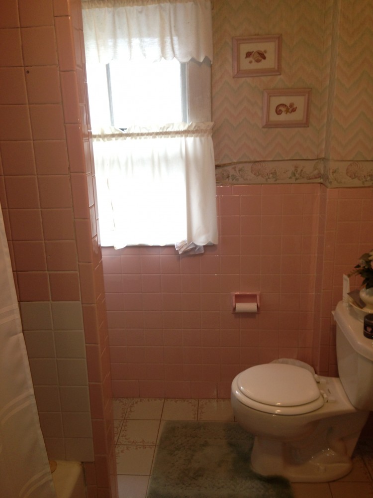 Updated bath with tub liner newfloor walls and ceiling surfaces