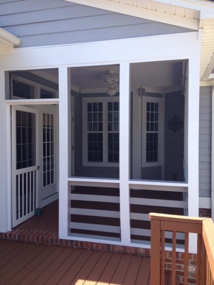 Exterior stain of deck. Re-paint of exterior trim and interior trim of porch. Re-paint of porch floor