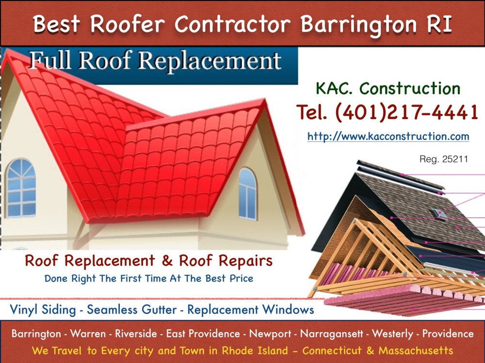 ROOF CONTRACTOR BARRINGTON RI, Rhode Island -//- (401)837-6730 KAC CONSTRUCTION, Best Roof Contractor Barrington RI, Rhode Island. ROOF CONTRACTOR BARRINGTON RI, Rhode Island Roof repair, roof replacement, rubber roof, roof lay over, new construction roof Installation, lead flashing Installation, Ridge Vent Installation, Storm Damaged Roof Repairs and more... BEST ROOF CONTRACTOR BARRINGTON RI, Rhode Island â˜Žï¸ ROOF LEAKING..?.....ROOF REPAIR & ROOF REPLACEMENT..- Affordable Prices.. OTHER SERVICES... - Roof Repair - Roof Replacement - rubber Roof - Insurance Claims roof repair & More..