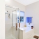 Lots of storage with custom cabinets painted white. Features include quartz top, nickel fixtures from Restoration Hardware, frame-less shower glass. Shower features an easy reach faucet with soap dish hidden in the glass tiled feature stripe.