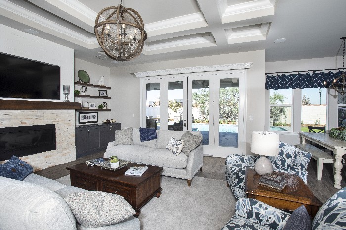 Our show home was built in accordance with lead home and green building certifications. The indoor and outdoor spaces are equally as important because of the island atmosphere. Our show home has a Coastal Cool design style featuring a unified space where the family can unite while still having their own space. Natural engineered wood flooring, custom cabinets, custom windows, doors, and imported features such as custom artwork & Balinese wood doors and artifacts for decor.