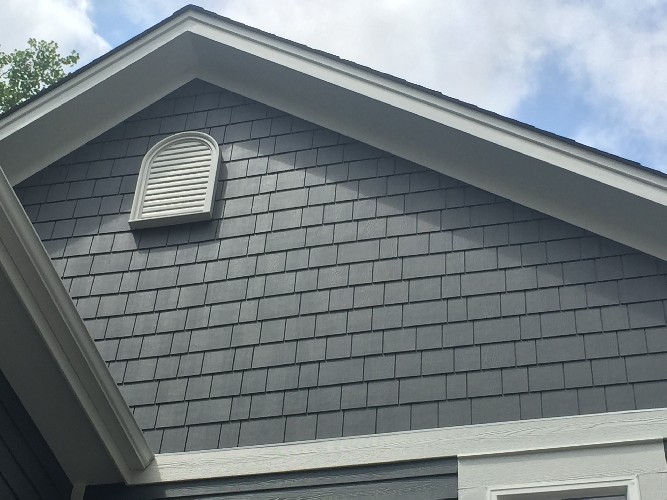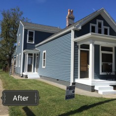 Our customer's 118-year-old home in Tuckerton, NJ was damaged when a fluke food-truck explosion occurred on her street. She contacted us for repairs and an intensive exterior project began. We replaced her damaged asphalt and cedar shakes roof with GAF's Timberline HD singles in Charcoal. Much detail went into her siding to keep its historic charm. We used CertainTeed's Monogram D4 siding in Cypress and added accents in the dormers and trim in Autumn Red and Lights Maple. New shutters gave a finished touch. Before and after pictures provided.