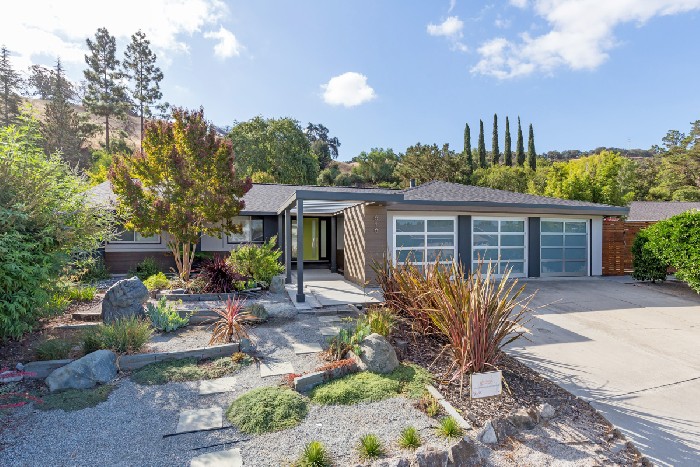 This home, located in Oakland CA, received a full outdoor redesign. The homeowner is an avid gardener, so it was important that the new hardscape design didn't overpower the homeowner's new landscape design. To do this, we balanced cool and warm tone pavers against one another. Then, we created an outdoor hearth centered around a custom built-in fireplace. Off that, we installed a full outdoor kitchen equipped with refrigerator, sink, bar seating, and a BBQ grill. Across from the kitchen, you'll find a full paver dining setup featuring an overhead outdoor LED lighting fixture and built-in seating compliments of a paver sitting wall. On the other side of the backyard, we installed an extended paver patio boasting its own seating area. To connect the full exterior of the home, we installed a paver walkway leading from the backyard, around the front of the home and ending at the new paver driveway. To finish things off, LED lighting was installed to complement the new hardscape design.