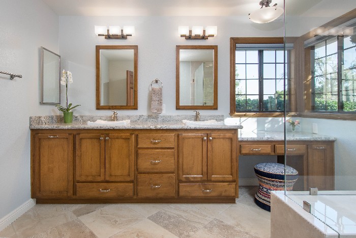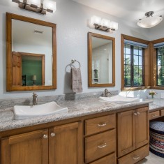 This project changed our clients' lives! We took their master bathroom from drab and dated, to elegant and functional. We added age-in-place features including: a large walk-in shower, plenty of grab bars, a large shower bench, a fixed, and a handheld shower head. The clients can now enjoy their master bathroom for many more years to come.